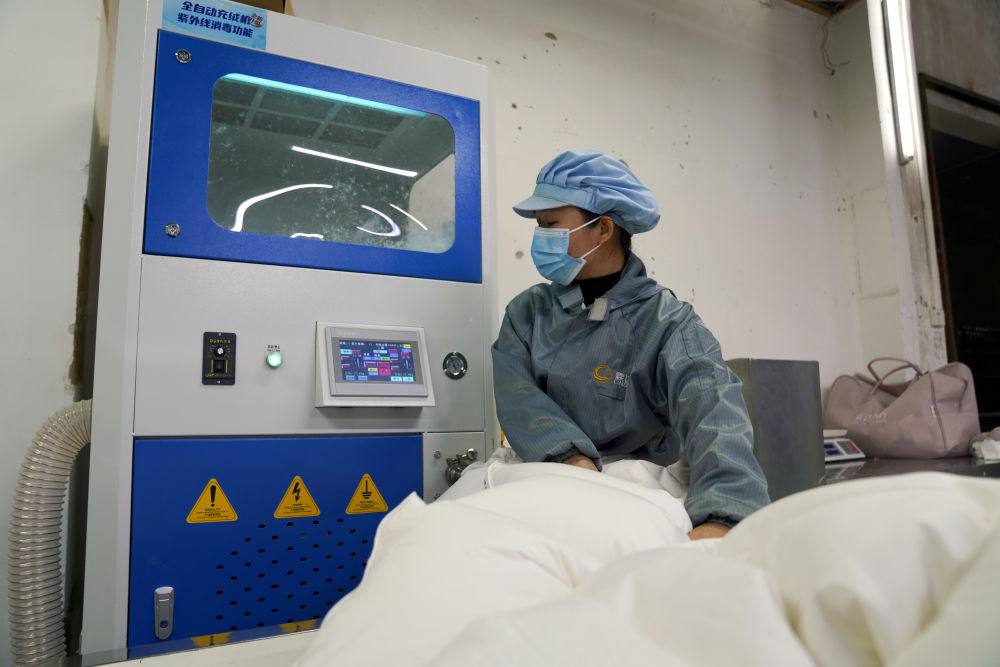 “那时候镇上出现了很多分鸭毛的家庭小作坊。”曾经长期收购鸭毛的李海军回忆说,白天走街串巷收鸭毛,晚上就用分毛机打成绒,粗加工后再卖到江浙、广东等地的制衣厂,“收入还是蛮不错的呢!”