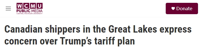 而美国的“邻居”加拿大的五大湖航运商同样对特朗普的关税计划表示担忧。五大湖-圣劳伦斯航道(The Great Lakes-St. Lawrence Seaway)在2023年创造了超过500亿美元的经济活动。有超过35万人在这里从事航运业,代表加拿大和美国航运利益相关者的海洋商会CEO布鲁斯·伯罗斯(Bruce Burrows)认为,25%的关税将损害美加边境两侧的农业公司。“他们生产的产品销售给美国消费者。如果他们的投入成本上升25%,那么这将很快转嫁给美国消费者。这不是好事。”他说。