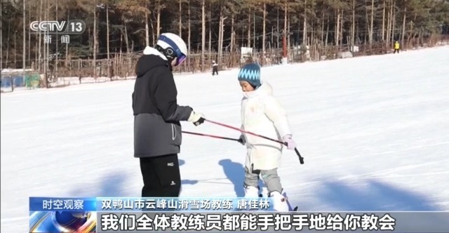 双鸭山市云峰山滑雪场教练 唐佳林:在原有的魔毯长度的基础上,又增加了长度,可以直达山顶。无论是成人还是小孩,无论有没有滑雪的技术,我们全体教练员都能手把手教会。