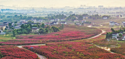 四川省华蓥市禄市镇凉水井村,农村公路在花海中蜿蜒。近年来,华蓥市持续推进交通建设,逐步形成城乡贯通、区间快速、主次分明的交通网络。