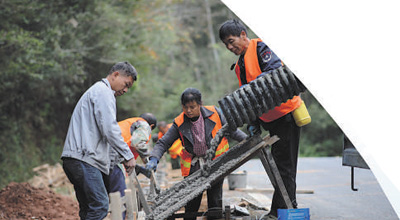 湖南省通道侗族自治县万佛山镇太平岩村,工人在修筑公路排水沟。当地持续推进农村公路建设,不断完善养护管理。