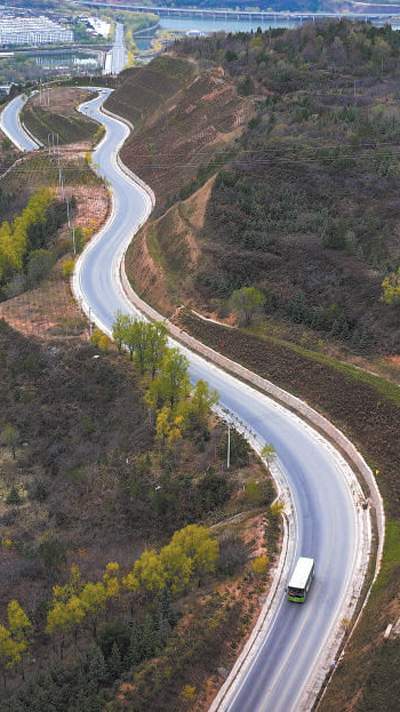 宁夏回族自治区固原市隆德县境内的乡村公路上,一辆公交车从隆德县城驶向乡村。