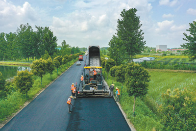安徽省芜湖市繁昌区峨山镇东岛村,正在铺筑沥青的县道平峨路。近年来,繁昌区不断完善农村路网体系,推动城乡一体化发展。