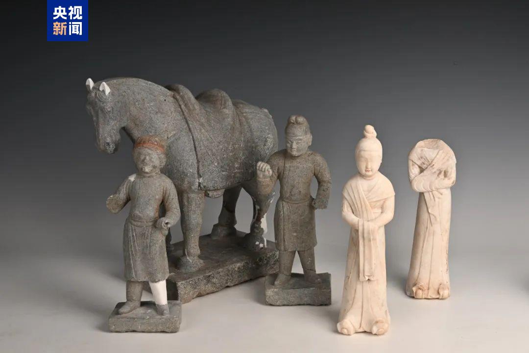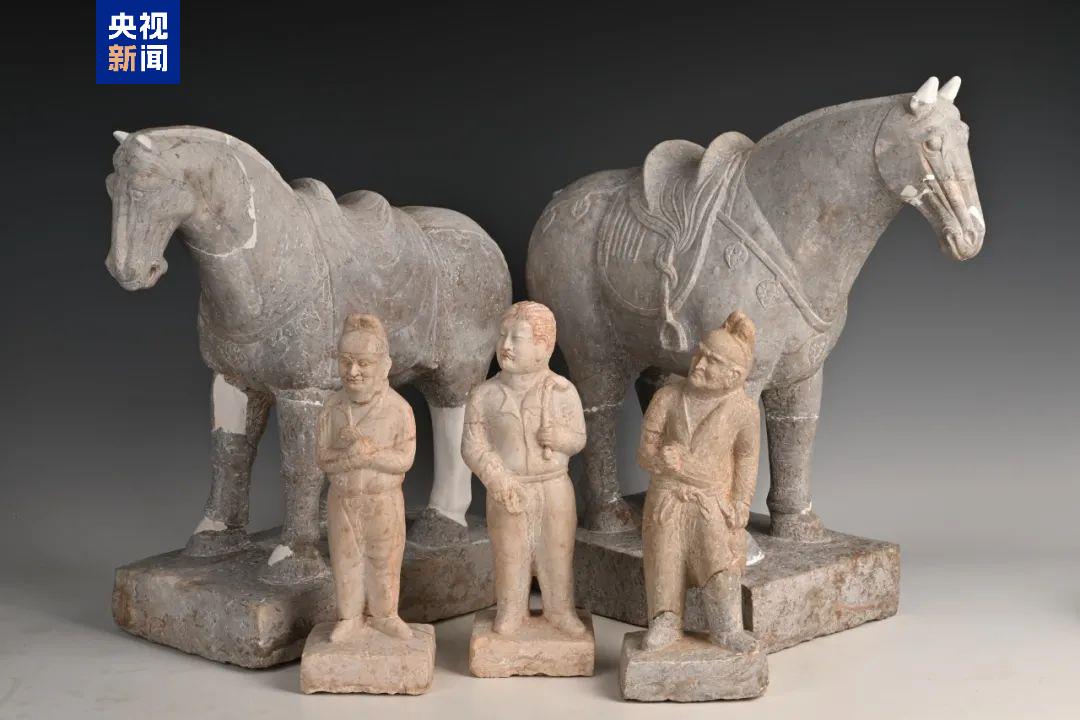 另外,考古人员还发现唐代“安定乌支族”梁氏家族墓地,由三座带天井斜坡墓道砖室墓组成,呈品字形分布,出土青石马、青石俑、汉白玉俑等石制陪葬品,青石俑形象为胡人牵马,汉白玉俑为女性立姿,朱唇装饰。其中一件赤发朱唇白玉石俑,初步推测其为黠戛斯人,与乾陵石人像左威卫大将军兼坚昆都督结匐肤莫贺咄为同族,这一完整黠戛斯人人物形象的发现,尚属首次。