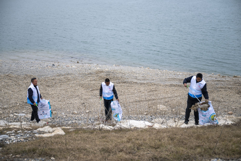 2024年12月8日,丹江口市石鼓镇鞍子垭村志愿者在玉皇顶码头水域开展守水护水志愿服务。