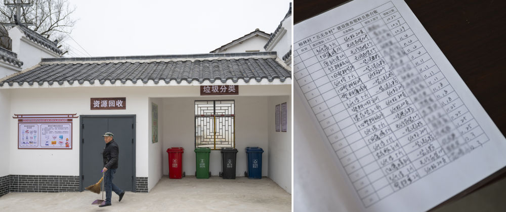 2024年12月8日,在丹江口市石鼓镇柳林村拍摄的垃圾分类处和塑料资源回收点。村民可将新旧塑料制品带到此处换成环保生活日用品。