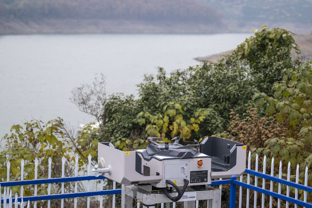 2024年12月8日,位于丹江口市库区综合执法大队六中队的机巢式无人机准备起飞。