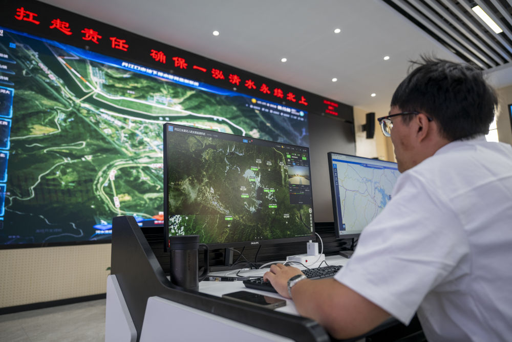 同时,为了“不让一滴污水进入河库”,“空、天、地、水”守水防线全方位在丹江口库区筑牢。通过高空卫星、无人机、环库岸线摄像头、地下雨污管网内的监测仪等设备,工作人员能实时监测库岸线安全、非法垂钓、危化品运输等情况,重点排污企业、污水处理厂情况也一目了然。