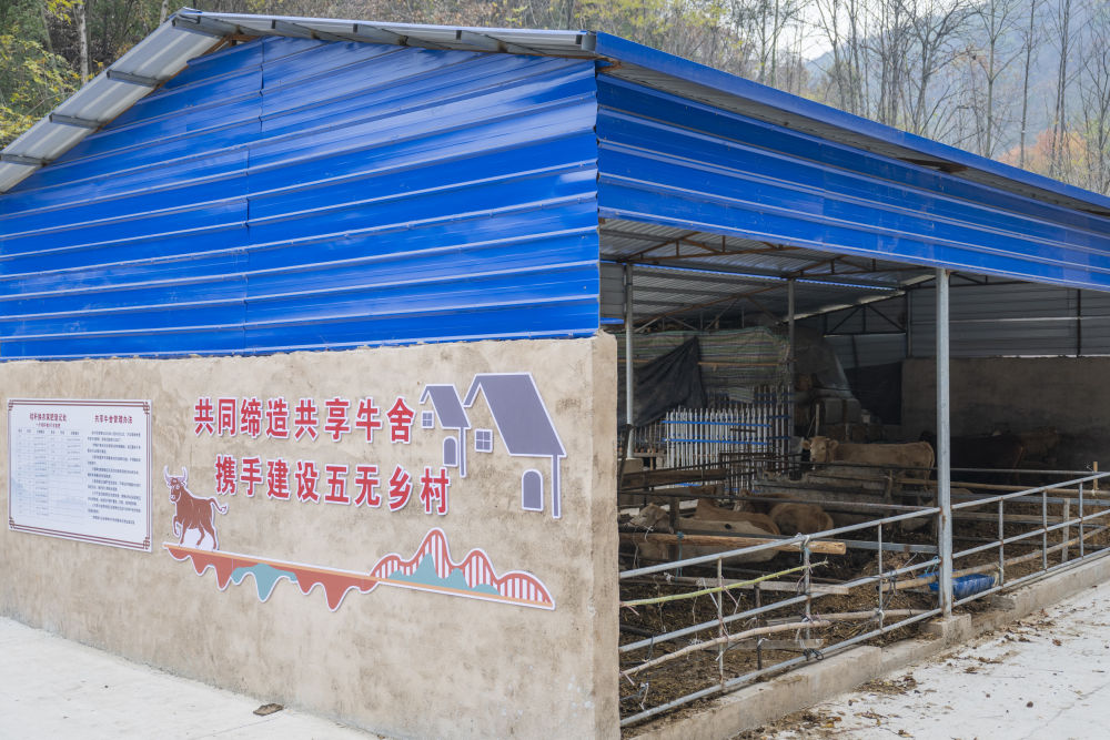 2024年12月8日,在丹江口市石鼓镇柳林村拍摄的共享牛舍。共享牛舍可以将耕牛集中管理,避免村民将耕牛散养污染水体。