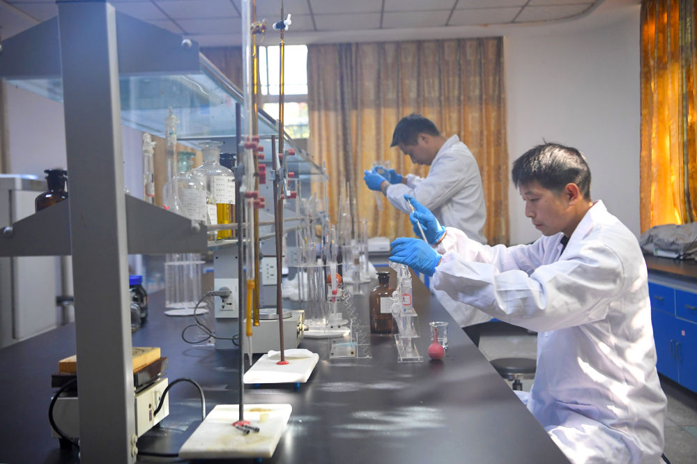 2024年11月28日,在南阳市生态环境局淅川分局环境监测站,工作人员在进行水质监测。