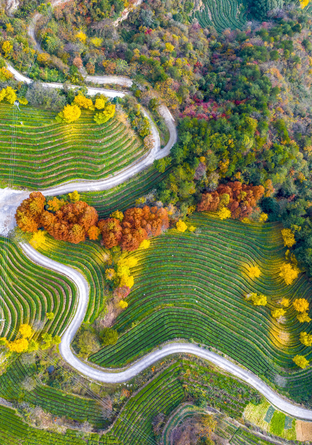 2023年11月24日在十堰市武当山旅游经济特区八仙观村拍摄的茶园(无人机照片)。