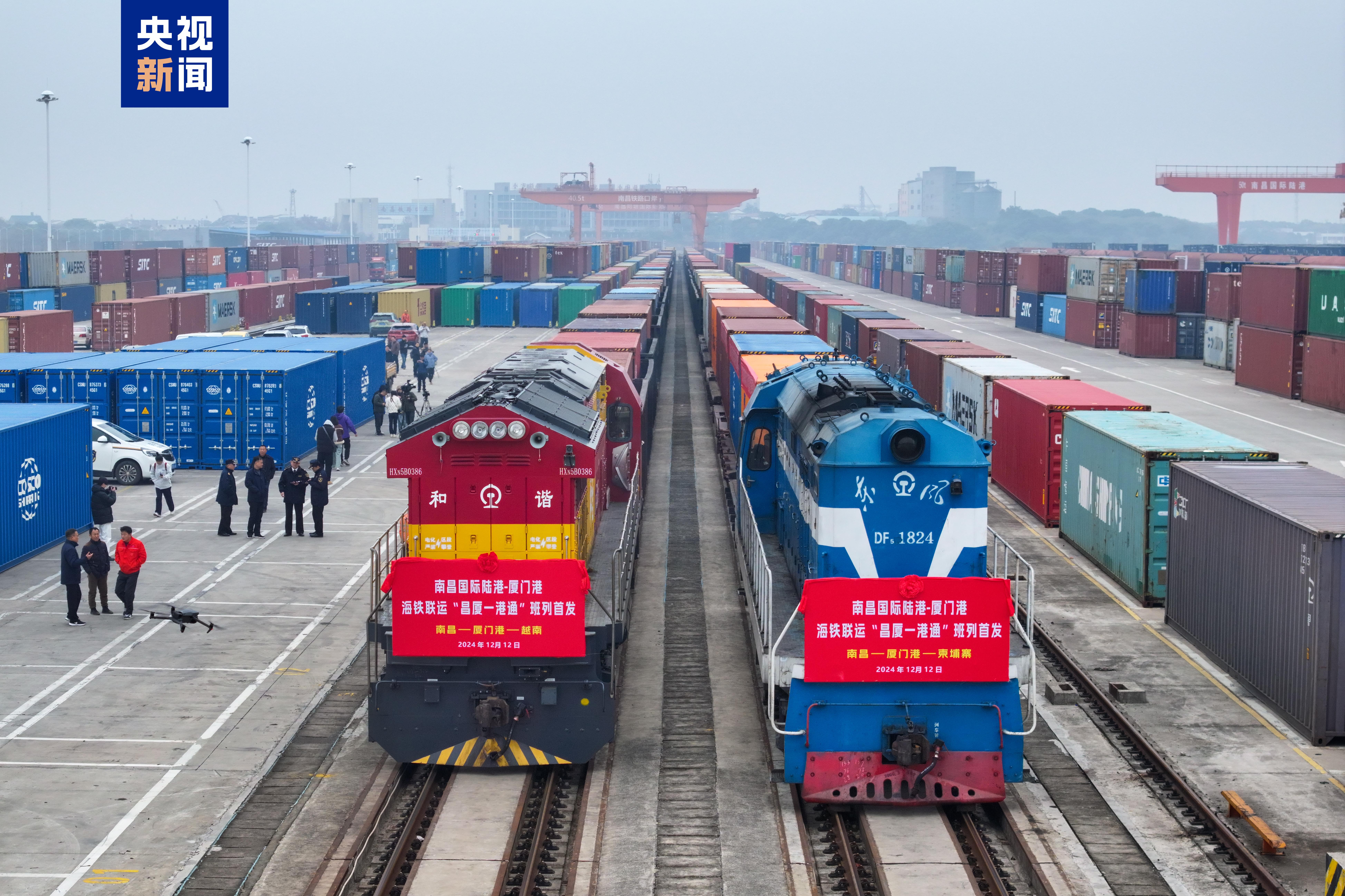 12月12日上午,伴随着笛声长鸣,两列满载着“江西制造”的铁海联运班列,在赣江新区海关的监管下依次驶出南昌国际陆港,标志着南昌国际陆港至厦门港“昌厦一港通”铁海联运班列正式开行,有力助推江西现代物流体系建设迈上新台阶。