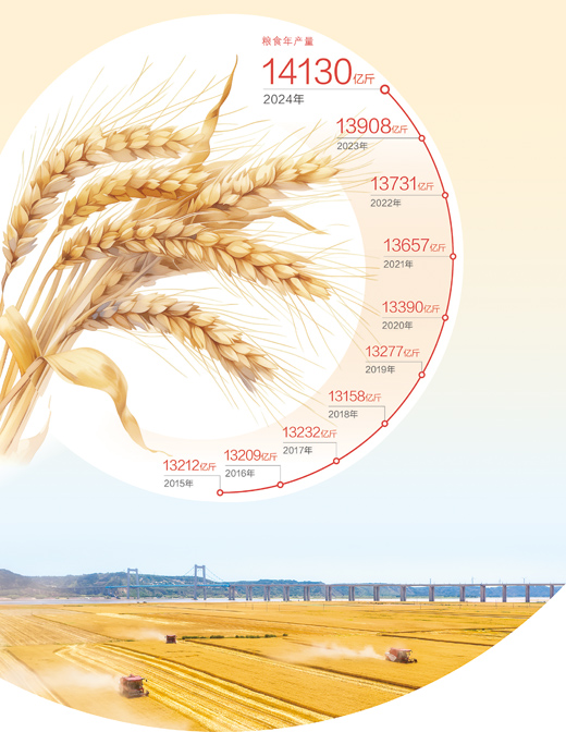 今年我国粮食总产量14130亿斤,首次站上1.4万亿斤新台阶,再创历史新高。