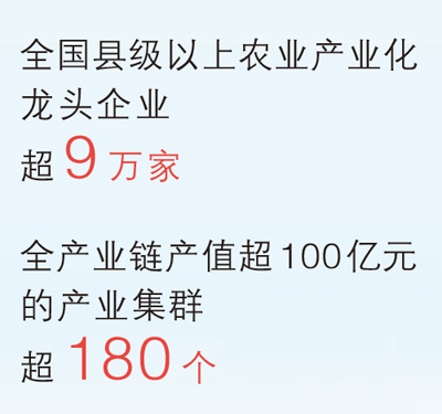 带动农民、连接市场、引领发展,各类新型农业经营主体发展壮大,充分激发农业农村发展活力。目前,全国纳入名录系统的家庭农场近400万个,依法登记的农民合作社达214.5万家、联合社达1.5万家。社会化服务提质扩面,持续推动小农户与现代农业发展有机衔接。