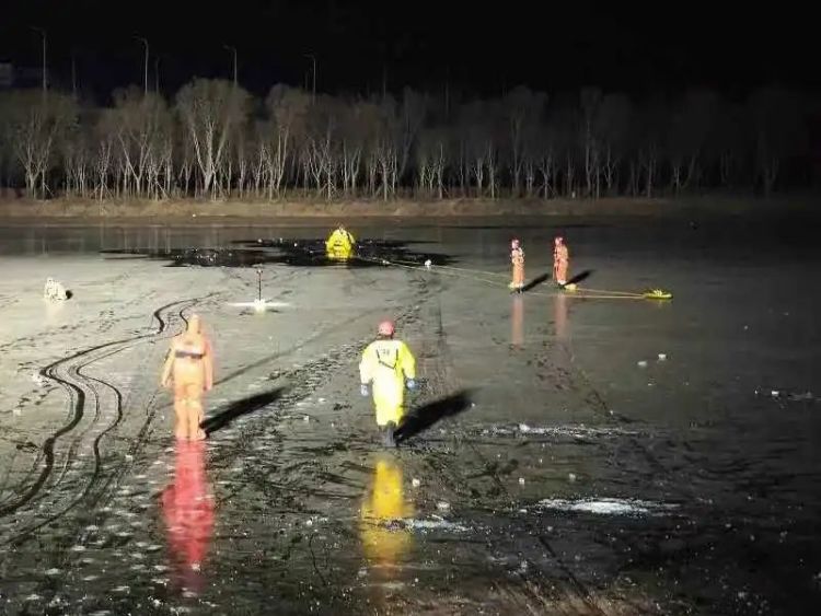 但事发水域的冰面较薄