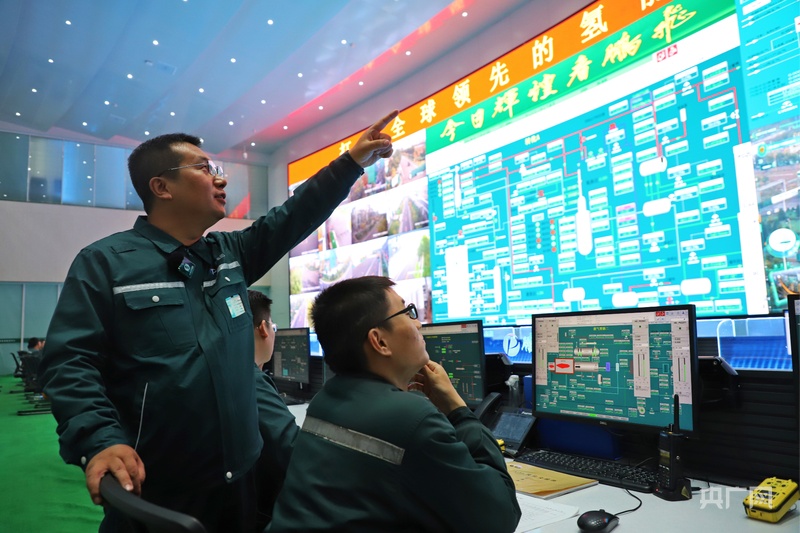 “从园区项目开始建设,我和来自五湖四海的技术人员一起,见证了这个绿色能源基地从无到有的全过程。”每天,梧桐镇鹏湾氢港氢能产业园总工程师解栋,都会在园区内进行技术巡查。