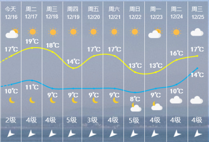 ◆过后,我市又进入回暖通道,20日至21日,城区最高气温可达17℃。