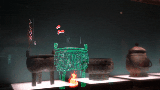 展馆内,震撼的裸眼3D让国宝们动了起来,让参观者瞬间“穿越”回商朝。