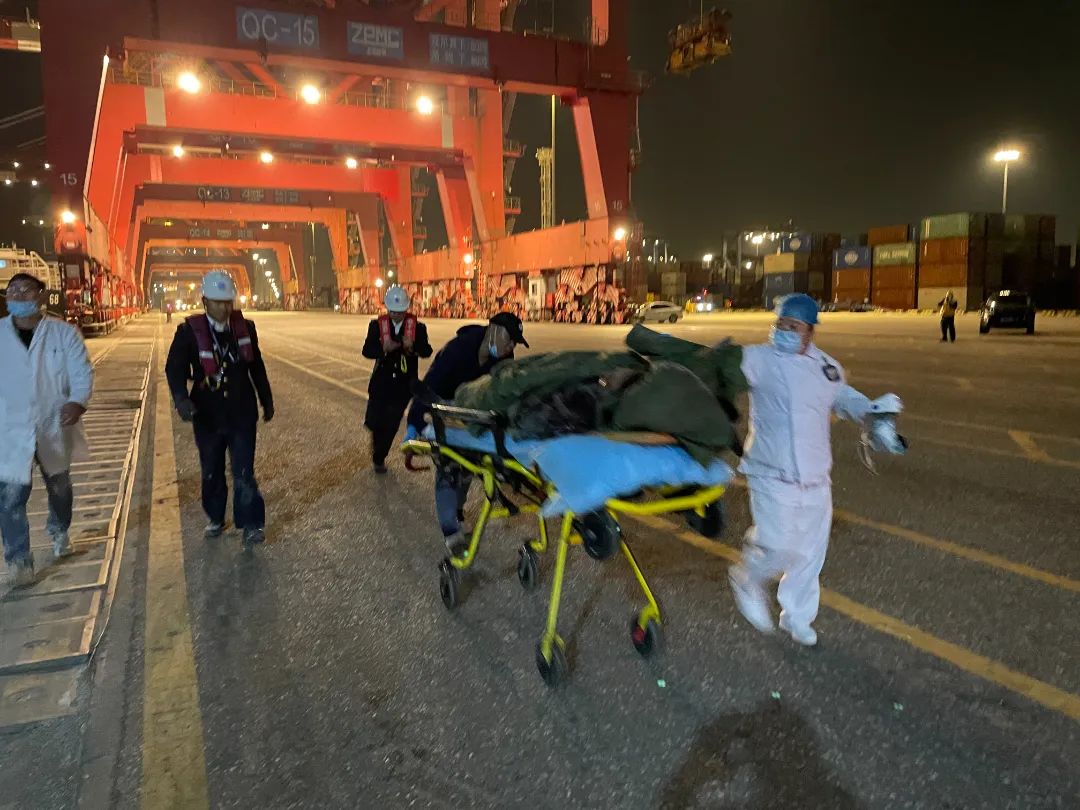 19时30分,“海巡09080”轮到达事发水域,配合广州船舶交通管理中心实施现场交通指挥,组织过往船舶避让“建荣XX”轮,保障其通过“生命绿色通道”顺利靠泊码头。随后,海事执法人员协助医护人员,将受伤船员安全转移至广州市南沙区医院接受治疗。目前,该受伤船员生命体征平稳。