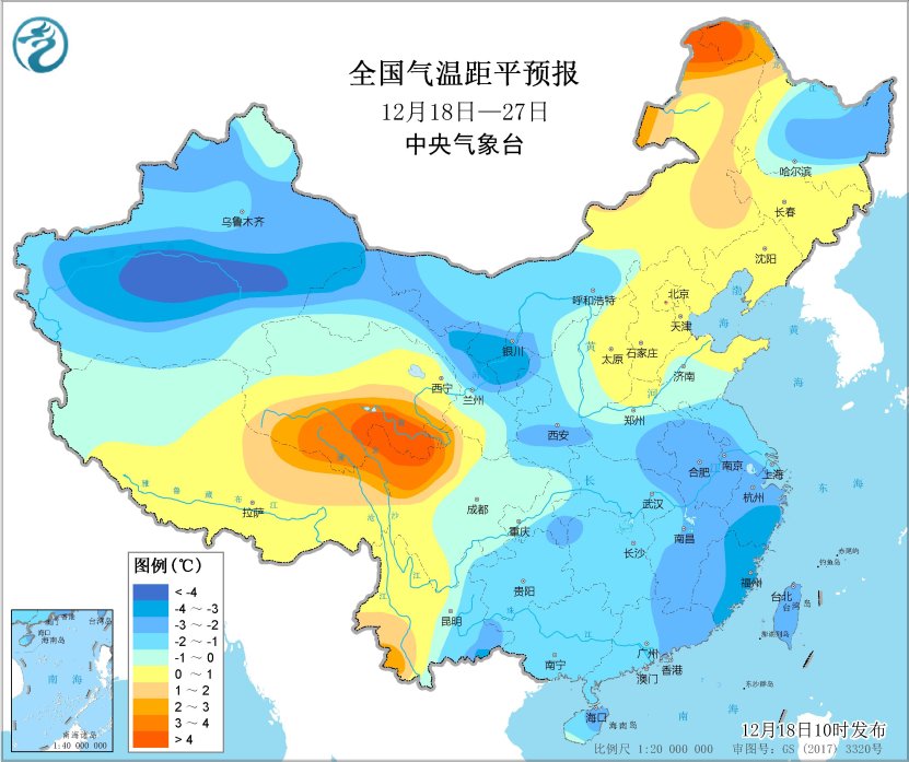 未来10天,内蒙古东北部、黑龙江北部、青藏高原、云南西部等地平均气温较常年同期偏高1~3℃,全国其余大部地区气温偏低,其中西北地区、黄淮南部、江淮西部、江南东部、华南东部等地部分地区偏低2~4℃。