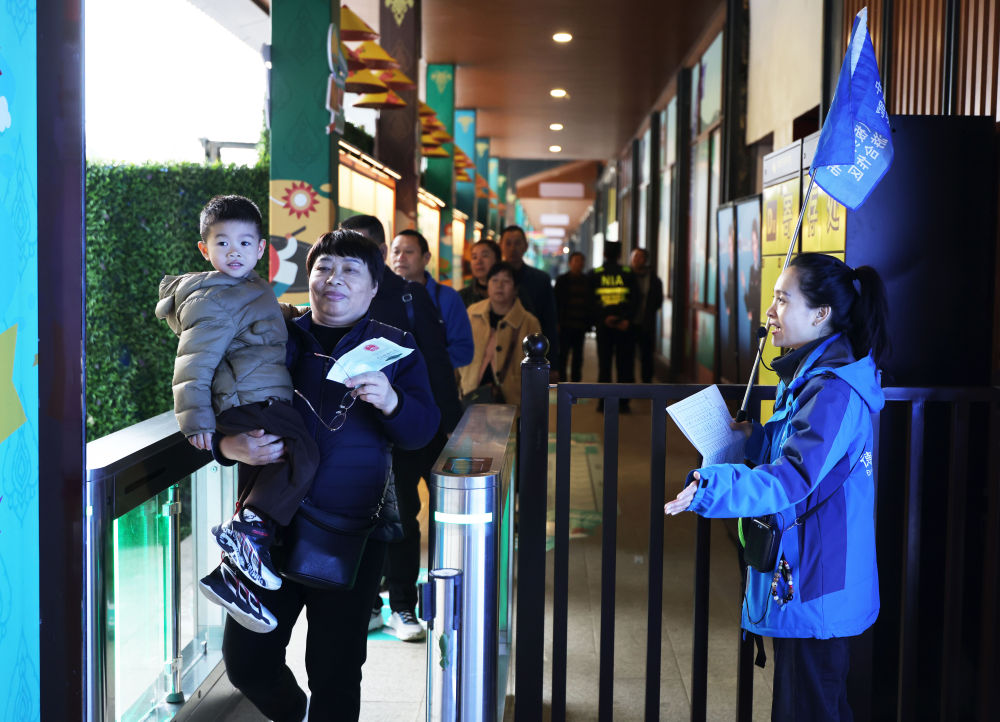 12月15日,在中越德天(板约)瀑布跨境旅游合作区,游客排队通过跨境游出境通道。