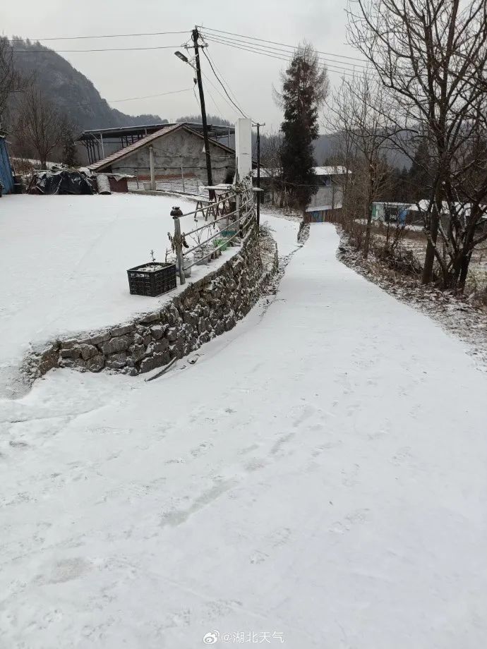 昨日,湖北多地就已经开始下雪了,十堰、襄阳、神农架、恩施、宜昌局地出现雨夹雪或小雪。下午5点,建始已出现积雪。