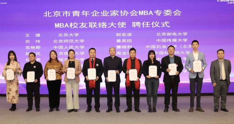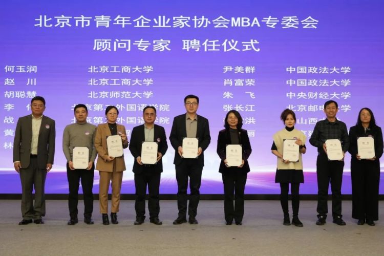 北京市青年企业家协会MBA专委会聘任多所MBA培养院校的院长和MBA中心主任担任顾问专家和智库成员。为进一步加强在京各校联络,促进商学院校友之间行业发展、就业创业和科研成果转化,聘任部分在京高校校友会负责人为专委会MBA校友联络大使并为北京市青年企业家协会MBA专委会秘书处人员颁发聘书。