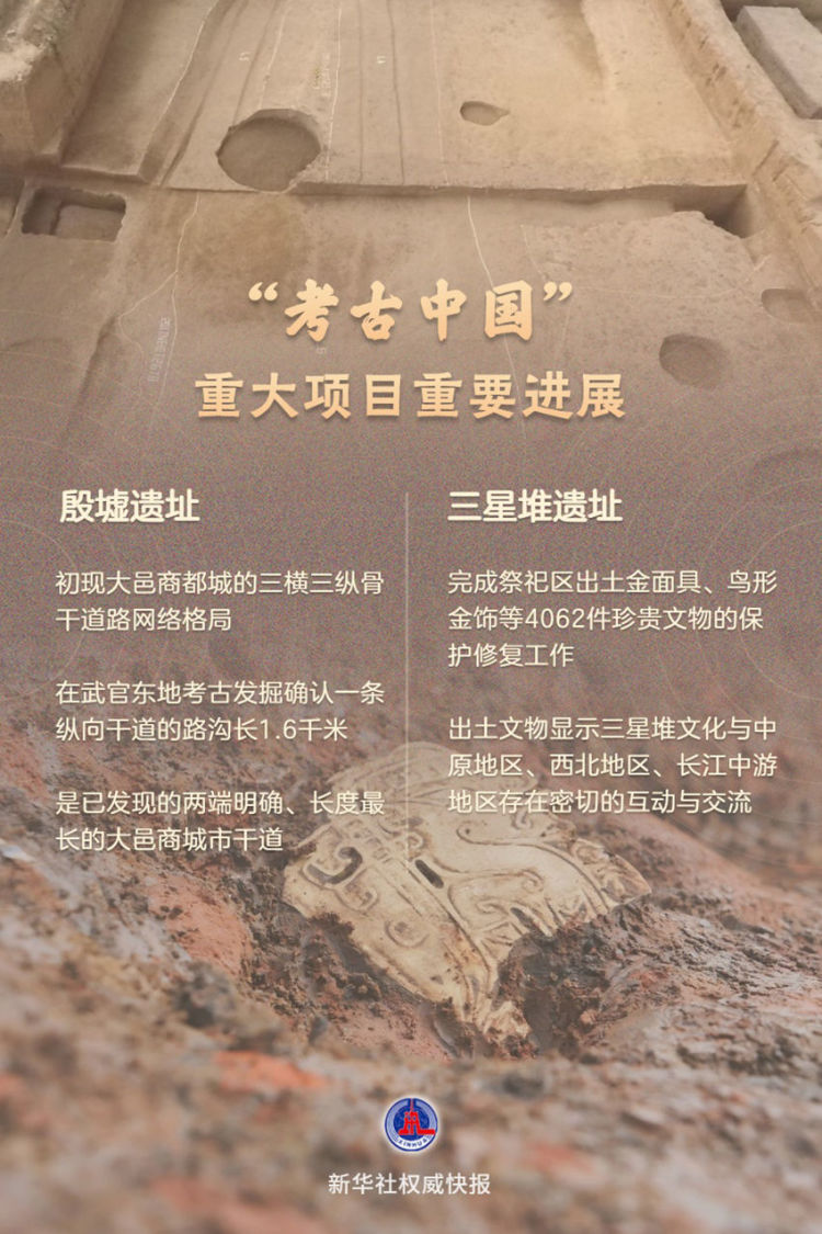 国家文物局12月26日举行“考古中国”重大项目重要进展工作会,通报了河南省安阳市殷墟遗址、四川省广汉市三星堆遗址、河南省洛阳市二里头遗址、山西省昔阳县钟村墓地的最新考古成果。