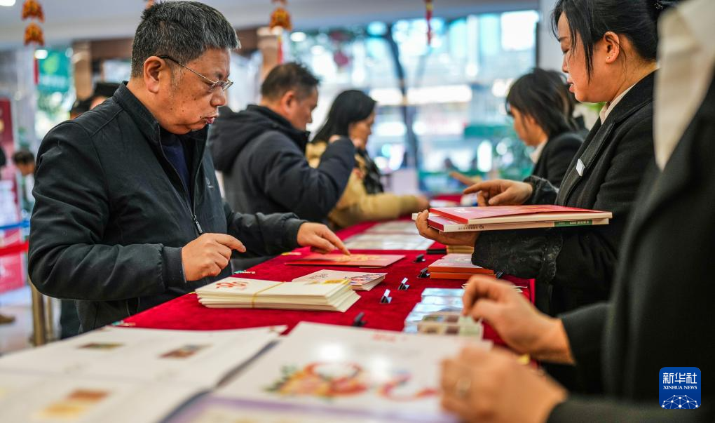 1月5日,市民在贵阳市一处邮局网点购买《乙巳年》特种邮票。新华社记者 陶亮 摄