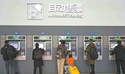 1月13日,2025年春运即将开始,杭州东站自动售票机前旅客正在取票。
