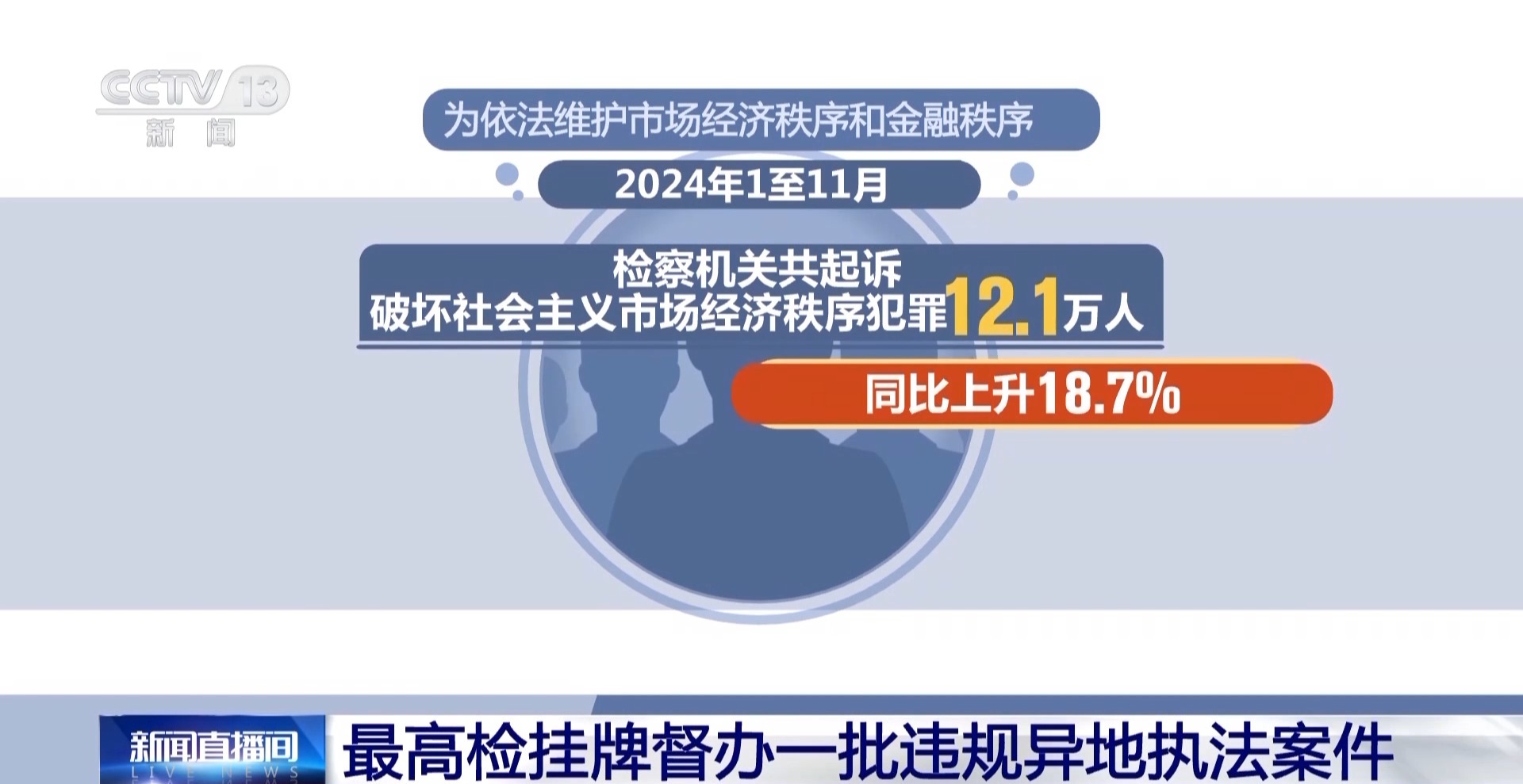 与此同时,为依法维护市场经济秩序和金融秩序,2024年1至11月检察机关共起诉破坏社会主义市场经济秩序犯罪12.1万人,同比上升18.7%。会同金融监管总局完善执法司法协作机制,起诉金融诈骗、破坏金融管理秩序犯罪2.2万人;协同防范打击利用虚拟货币非法向境外转移资产犯罪活动,起诉洗钱犯罪2741人。