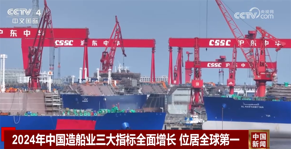 最新数据显示,2024年中国造船完工量、新接订单量、手持订单量三大指标分别占世界市场份额的55.7%、74.1%和63.1%。三大指标全面增长,位居全球第一。此外,在全球18种主要船型中,中国有14种船型新接订单量位居全球首位。