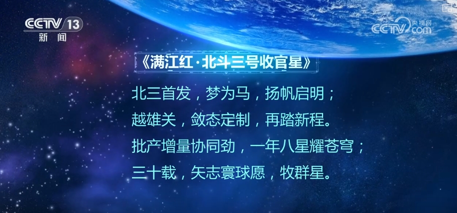 这是北斗三号卫星系统首席总设计师林宝军写的一首词《满江红·北斗三号收官星》,记录了北斗三号建设的关键节点,也梳理了北斗30年的发展脉络。