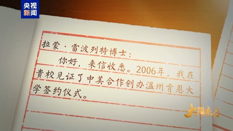 锦书云中来,尺牍传深情。2006年,时任浙江省委书记习近平在美国肯恩大学见证了中美合作创办温州肯恩大学的签约仪式。自2014年设立以来,温州肯恩大学不仅培养了数千名中外学子,还推动了中美两国青年一代的友好交流。去年6月,习主席复信美国肯恩大学校长拉蒙·雷波列特,鼓励中美两国高校加强交流合作,为促进中美友好贡献力量。