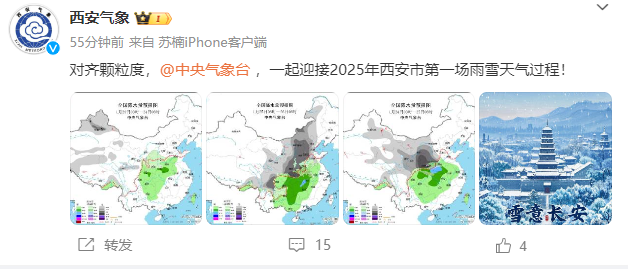 1月22日,据西安气象消息,2025年西安市第一场雨雪要来了。