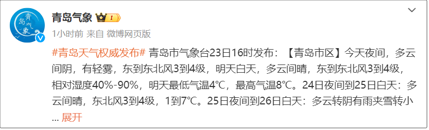 青岛市气象台1月23日11时