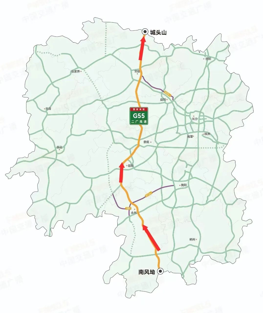 2.如遇导航提示在梽木山枢纽路段缓行,建议提前在邵阳南、邵阳东收费站下高速,绕行地方道路至隆回收费站,再上高速继续通行,或者更早经衡邵高速绕行长芷高速。