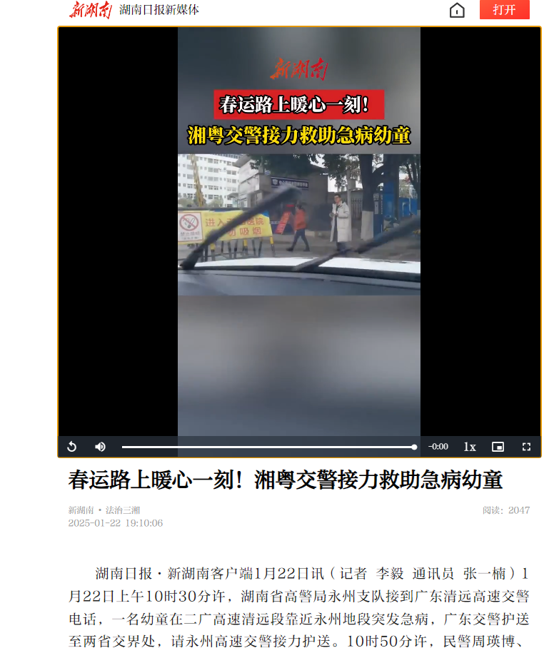 其中,二广高速小分队在探路过程中还遇到一个“小插曲”,他们出发时和广东交警接力将一名突发抽搐的幼童护送至蓝山县中心医院。