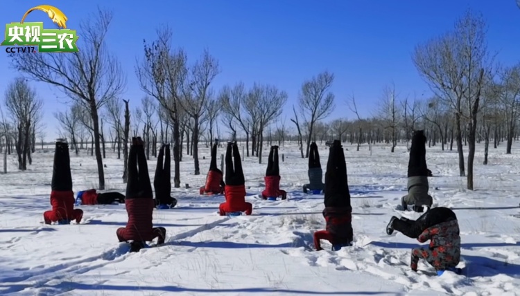 当夜幕降临,最惊艳的表演登场:河道的冰面上,篝火熊熊燃烧,老人们围着火光,用瑜伽动作迎接新年。这场篝火瑜伽,成为全场最受瞩目的焦点。