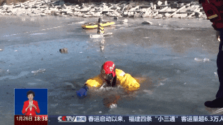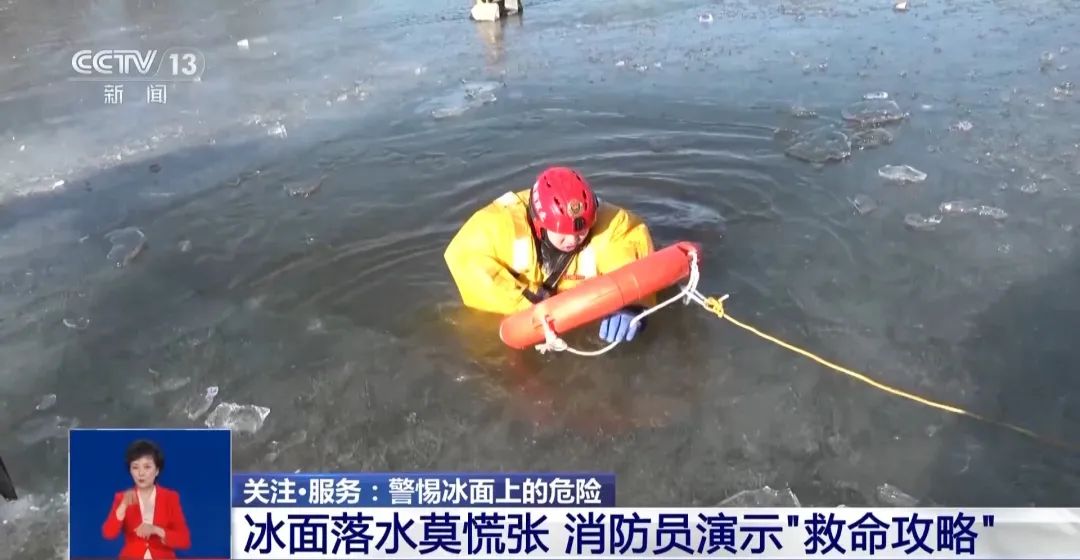 消防员介绍,落水者首先应大声呼救,同时避免过度惊慌。如发现周围没人,正确的自救方式应该是张开双臂撑在冰面之上,防止下坠。同时双腿不停打水,给身体提供向上和向前的浮力。随后利用手臂发力,将身体一点点挪出水面。要采取匍匐爬行或翻滚的方式离开落水点,防止冰面发生二次破裂。
