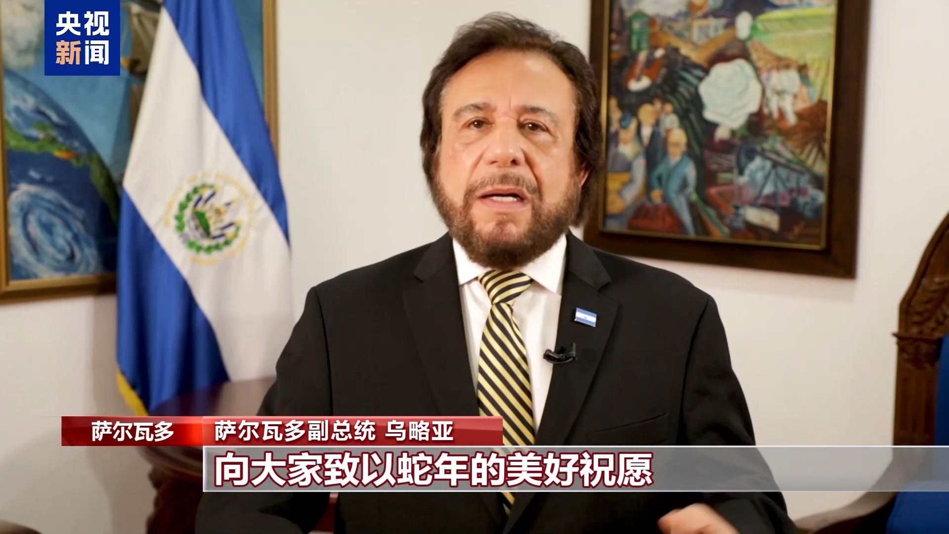 萨尔瓦多副总统 乌略亚:我从萨尔瓦多向你们送上新的一年最诚挚的祝福。新的一年充满了希望、和谐与繁荣。我代表萨尔瓦多人民和政府,向大家致以蛇年的美好祝愿。蛇年象征着生生不息的生命力,愿它带给所有中国家庭繁荣、健康和幸福,愿春节的缤纷色彩照亮充满希望的道路。过年好!