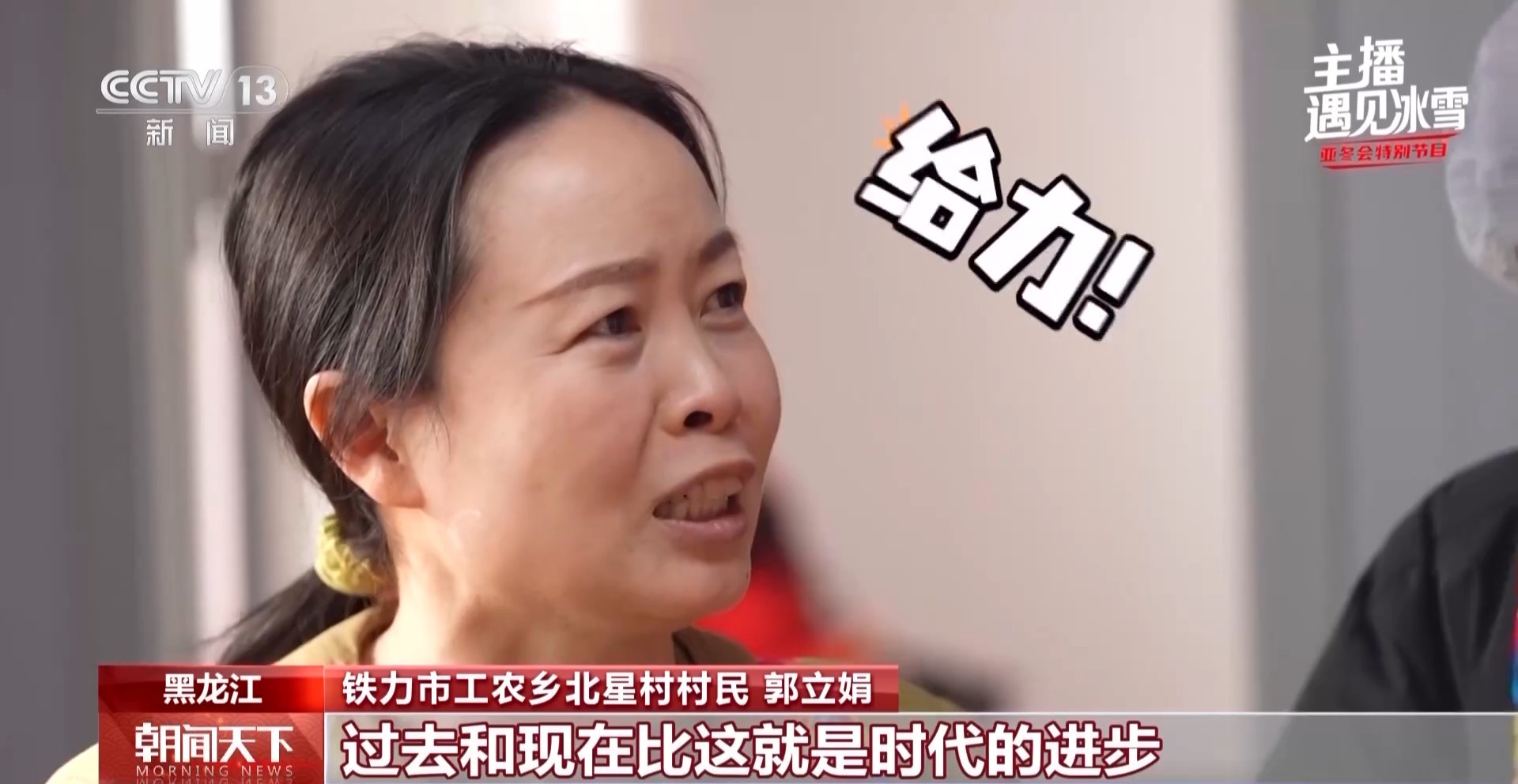 铁力市工农乡北星村村民 郭立娟:前些年就在家猫冬,可以随时吃饺子,踩雪、堆雪人、打雪仗。但是收入跟现在比不了,现在跟过去比这就是时代的进步,这就是给力了!道也好了,哈尔滨也火了,像我们这边的民宿,现在每年冬天我们都能有点额外收入。