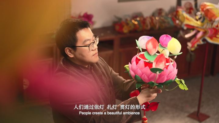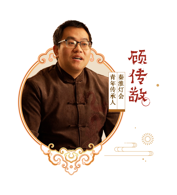 我的父亲叫顾业亮,他像一盏明灯,为我照亮了灯彩的世界。我的儿子叫顾万年,名字是父亲取的,他希望秦淮灯会能够一直传下去。我叫顾传敬,我希望接过父亲手里的接力棒,把灯彩传承好,像我名字一样,因为传承而受到尊敬。