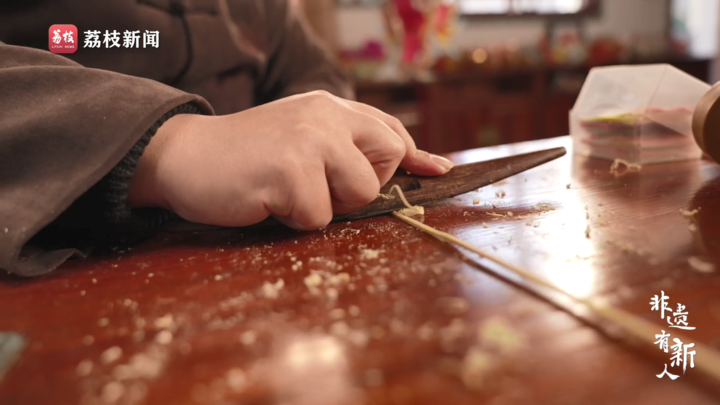 把竹子从中间劈开,如何把握着力点劈得对称?如果不对称,如何靠手感修正?劈到竹节处,该如何用力?种种不起眼的细节,都藏着诸多学问,一不小心便会劈到手。