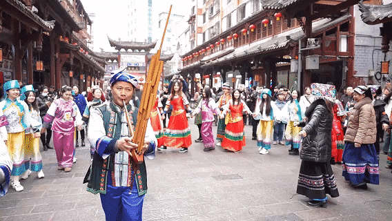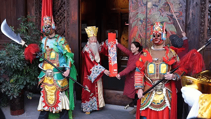 在四川阆中,“春节老人赐福”让古城节日氛围升腾;