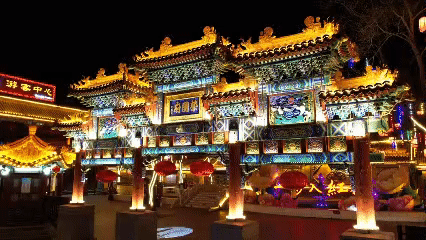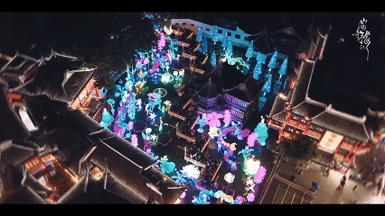 古老的飞檐亭台与璀璨的花灯交相辉映