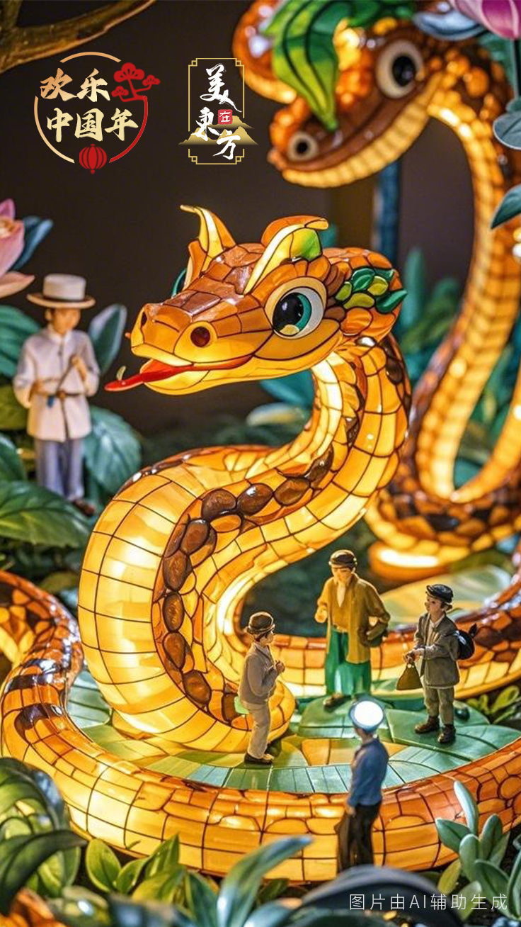 巨型灵蛇灯组、九曲桥区域众多灯组深受游客喜爱