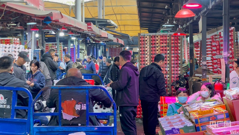 “现在价格便宜了,买的人更多了。”从佛山赶来的水果店老板蒋先生告诉央广网记者,他每年都会到江南市场进货,今年采购量有所加大,以满足春节期间的需求。