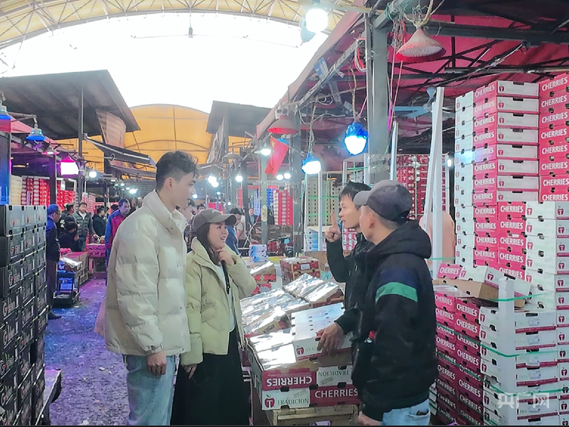 商户给顾客推荐车厘子(央广网记者 官文清 摄)