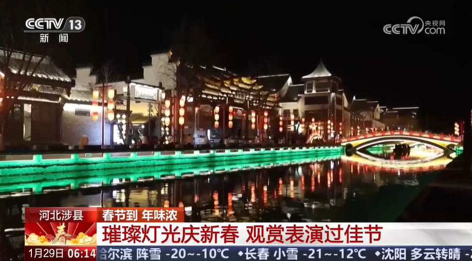 央视网消息:春节假期,在河北邯郸涉县的赤水湾古镇,各式各样的彩灯将小镇装扮得喜庆梦幻。